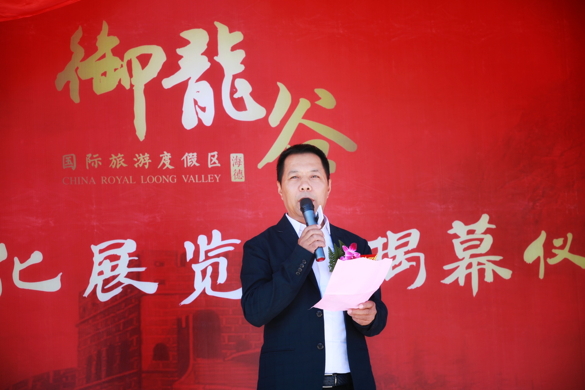首先進(jìn)行的是御龍谷行宮文化展覽館揭幕儀式,海德集團(tuán)董事長(zhǎng)馮祿海代表本次活動(dòng)的主辦方致歡迎辭,馮總表示御